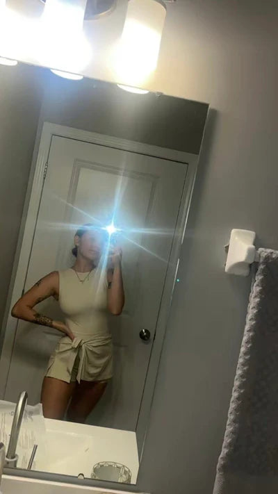 The high neckline offers versatility, seamlessly transitioning from the tennis court to casual looks. It’s perfect for sports, yoga, or stylish everyday outfits.